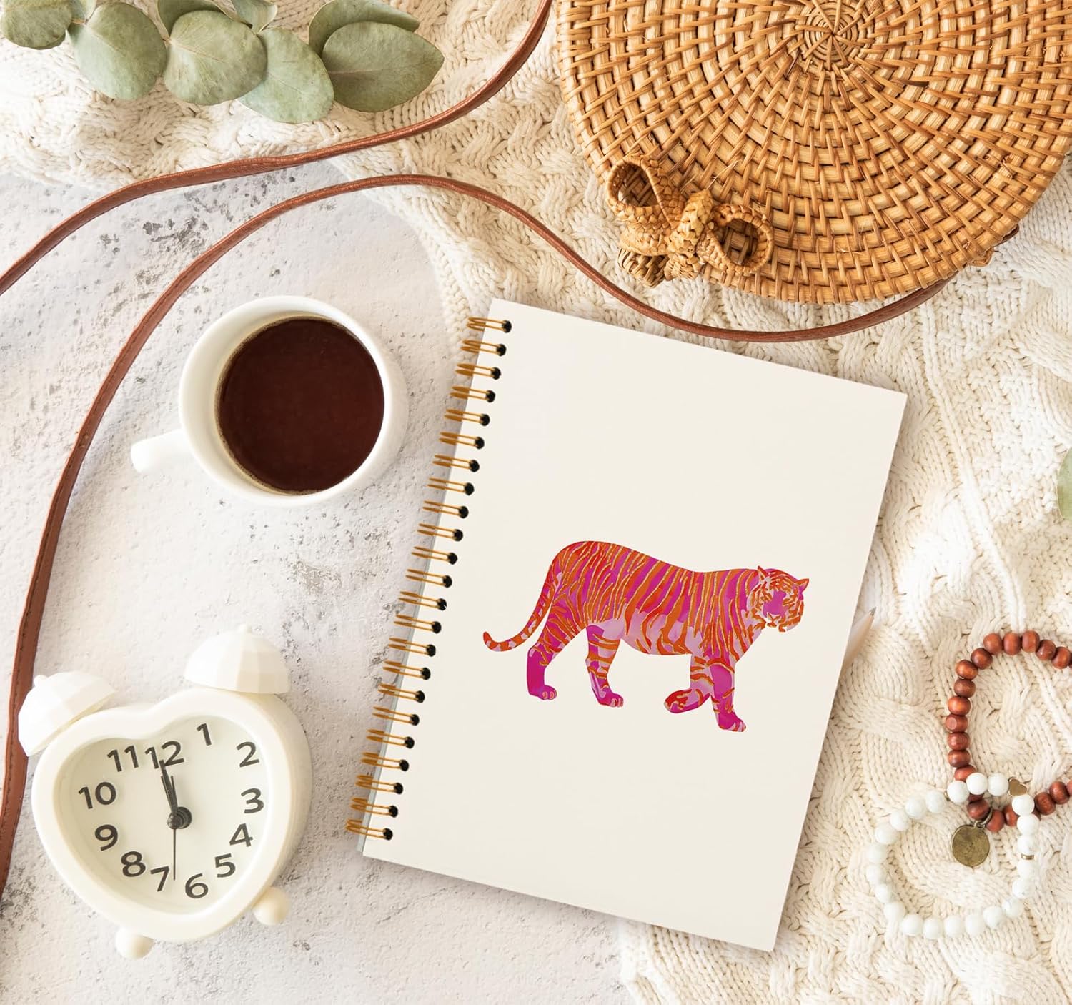 Preppy Pink Tiger Notebook Journal, Trendy Aesthetic Notebook for Teen Girl Note Taking Work, Preppy School Supplies Stuff, College Ruled Hardcover Spiral Notebook 5.5 x 8.3